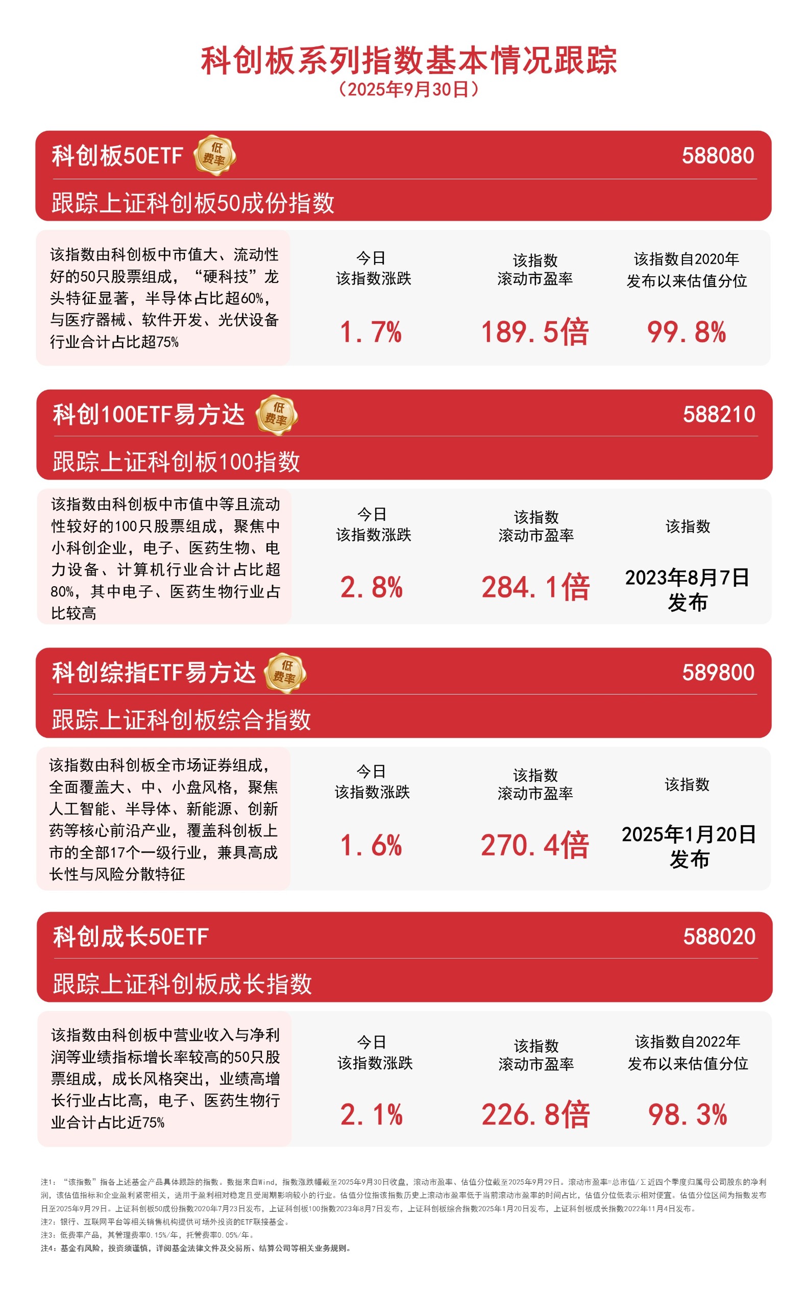 半导体板块今日全线走强,存储器、ASIC芯片、光刻机等概念领涨。截至收盘,科创100指数上涨2.8%炒股交易软件,科创板成长指数上涨2.1%炒股交易软件,科创板50指数上涨1.7%,科创综指上涨1.6%。以上指数中,科创板50指数的半导体行业权重最高,超过65%,科创板50ETF(588080)最新规模超750亿元,在科创板全部ETF中位居第一。