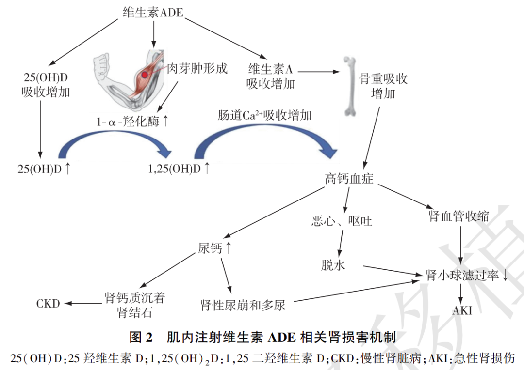 但同时,由于肌内注射剂量较大,也会导致体内吸收过多的维生素A、维生素D,导致高钙血症,过多的钙会沉积在肾脏、导致肾脏血管收缩,甚至引起急性肾损伤。