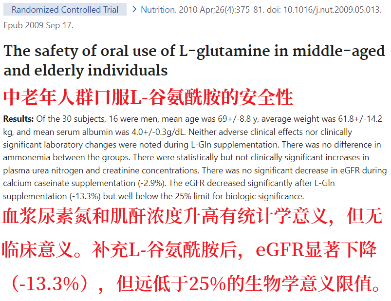 而且,有研究显示,中年受试者口服谷氨酰胺0.5g/kg/天,可使尿素氮和血肌酐升高,下降。其机制可能与IL-1β、IL-6等炎性细胞因子的过度表达有关。