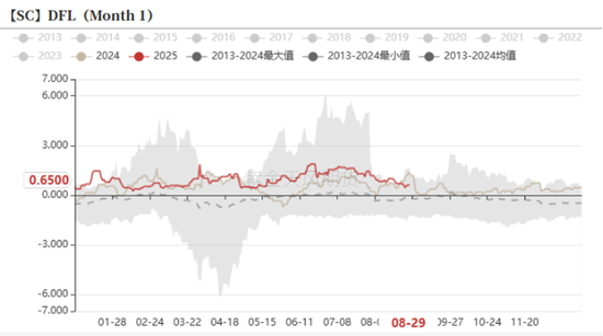 截至8月28日,CFD和DFL分别收至-0.19美元/桶和0.65美元/桶。