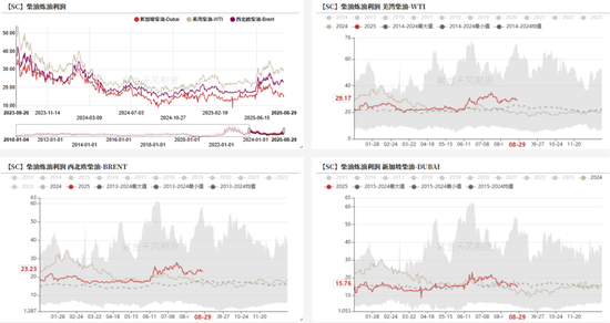 8月初以来,国内SC价格相较Brent持续被低估,核心原油在于炼厂端大检修将至的背景下,高库存和仓单压力对盘面的传导。